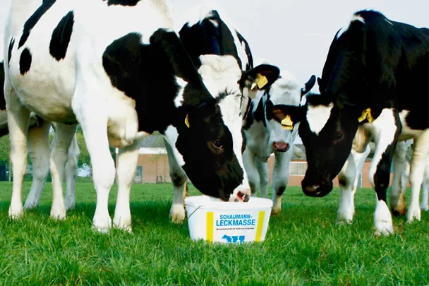 Schaumann-Leckmassen für Rinder decken den Mineral- und Wirkstoffbedarf auf der Weide. Gezielt ausgewählte Rohstoffe, hohe Vitaminverfügbarkeit, das Versorgungsplus durch organisch gebundene Aminotrace-Spurenelemente, optimale Verarbeitungsprozesse und hervorragende Akzeptanz sichern die Versorgung der Tiere auf der Weide und im Stall. Der Einsatz der Schaumann-Leckmassen ist auch in der ökologischen Tierhaltung möglich.