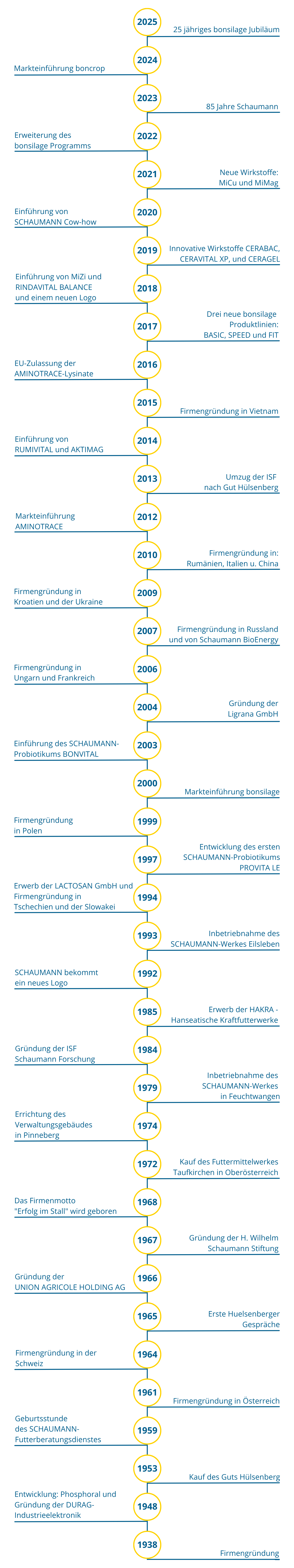 Im Folgenden finden Sie eine Übersicht der wichtigsten Meilensteine, die unsere Unternehmensgeschichte geprägt haben.